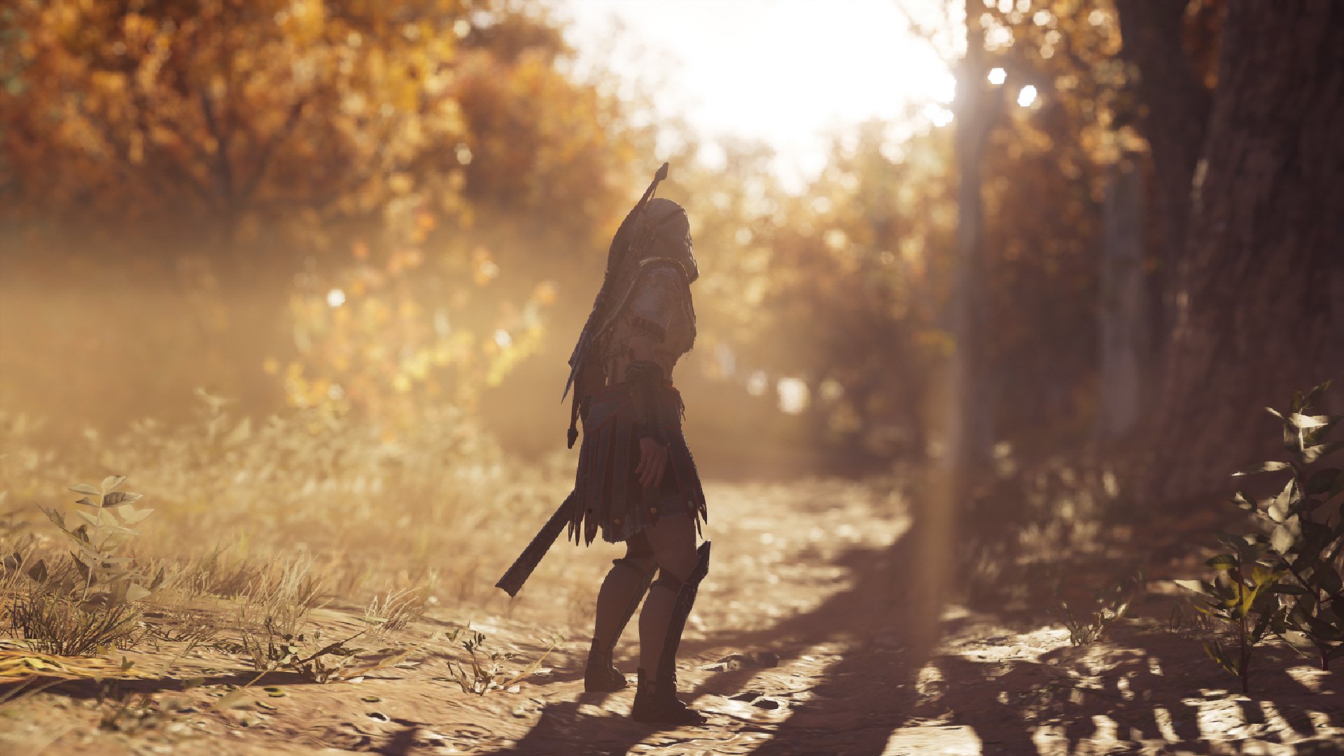 I loved listening to the music in this game. Especially when I would just wander around the game in the forest/desert areas when it was nice and calm as long as there was nothing hunting you. It was just so peaceful and nice to listen to that I would just aimlessly wander each of the island so that I could not only expand my map but just listen to the music. There were times where I would just let the game play in the background while I did other tasks outside of the game because the music was just so peaceful. | Assassin's Creed Odyssey: Kassandra Exploring |